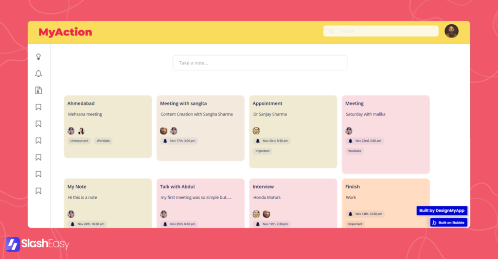 This is a demo version of an app we build for one of our client. The goal of this project was to develop a note-taking app like Google Keep that allows users to create notes, tag other users, add labels and set reminders. The notes could be organized with labels and placed in respective folders. The app was built on the Bubble.io platform, which allowed for rapid development and deployment of the app.