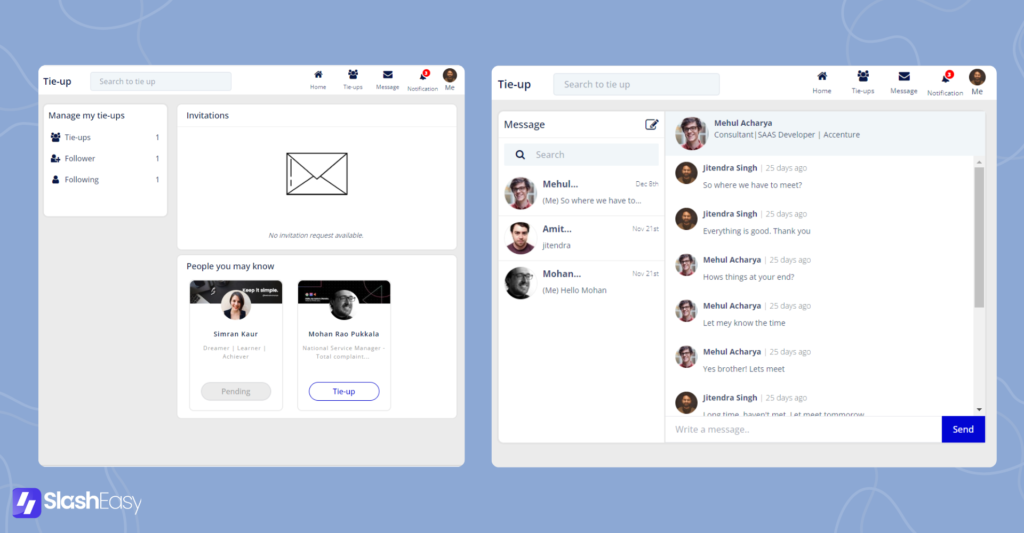 The messaging feature allowed users to send private messages to their connections. The New Post creation feature allowed users to share their thoughts, ideas, and expertise with their network. The Add and Eliminate feature allowed users to manage their network and connections with ease.